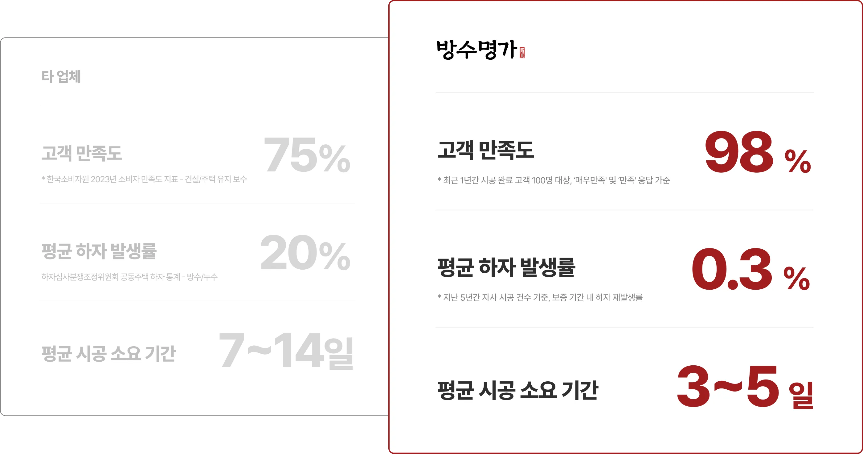 최장 5년 무상 보증을 가능하게 만든, 방수명가만의 집요한 시공 기록을 공개합니다.