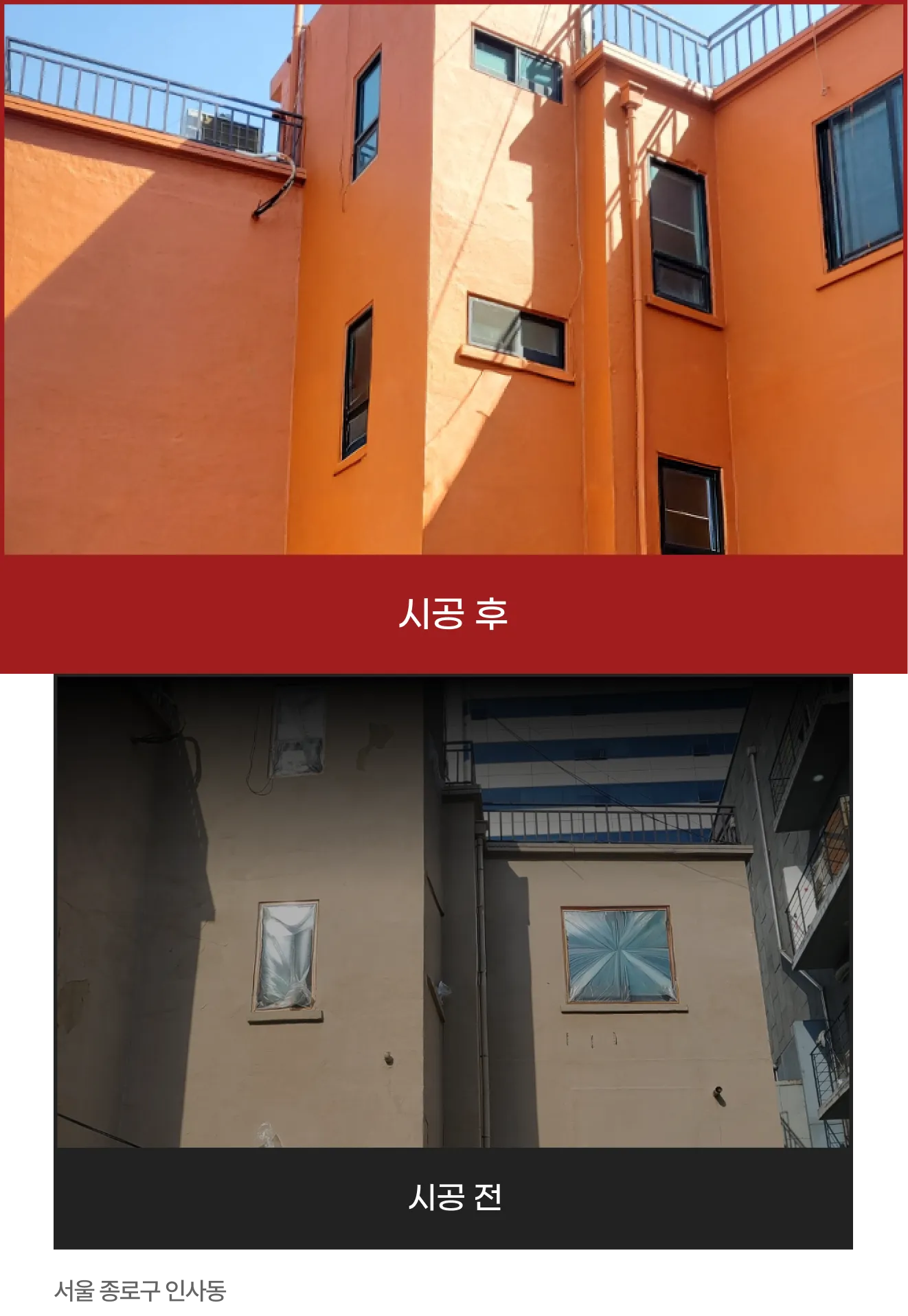 따라서 외벽방수는 정확한 진단과 그에 맞는 적절한 시공 범위 설정이 필수입니다. 30년 경력의 노하우로 건물의 노후도와 외벽 자재의 특성을 정밀하게 분석하여, 재발 걱정 없는 최적의 맞춤 설계를 제안합니다. 전문 자격증을 보유한 숙련된 기술력으로 소중한 건물을 비바람으로부터 안전하고 견고하게 보호해 드립니다.